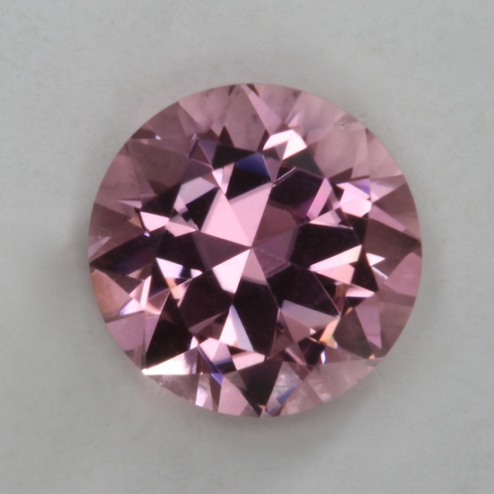 This standard round brilliant appears to be eye clean and could be called a baby pink color. It has a medium light tone value and weighs 1.44 carats.