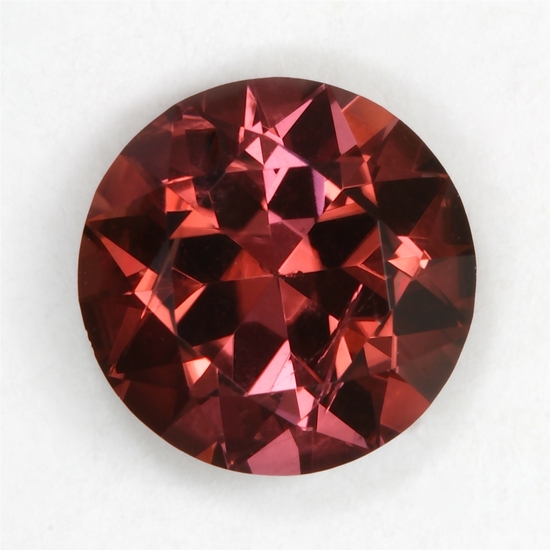 Darker standard round brilliant with a color that floats between orange and purple/pink depending on the light. It has one eye visible flaw that is perpendicular to the table and hard to see. It weighs 1.67 carats.