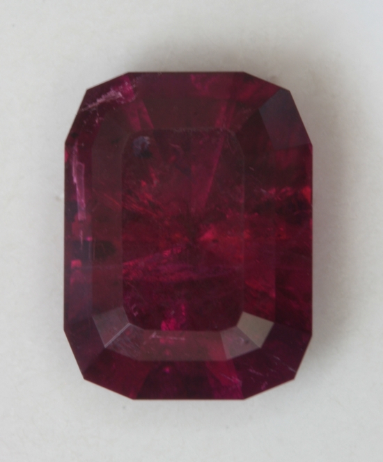 This smaller, darker red ,modified Barion cushion has more light movement than flash. It is small, but rich in color and determined. It appears to be eye clean and weighs 1.18 carats.
