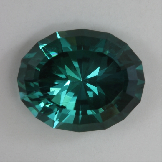 A high stepped crown and fine material makes a fine blue green oval . #562