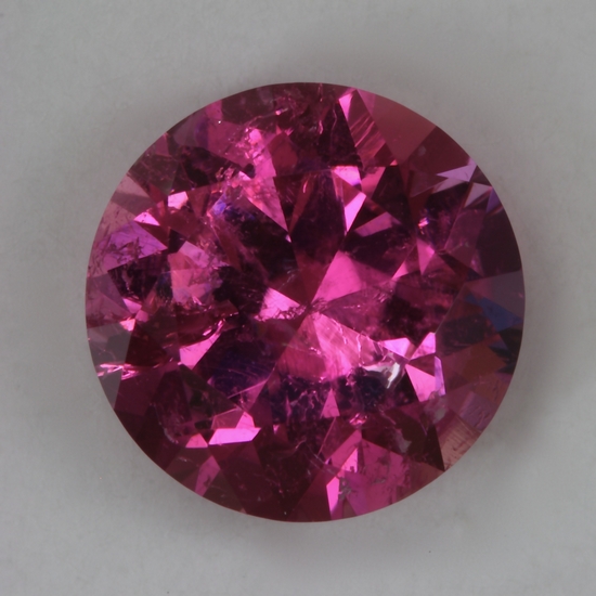 I like this gemstone. This standard round brilliant has a moderate amount of inclusion that have very little impact on this bright hot pink gemstone. The eye candy color along with a strong medium tone level captures the eye. It weighs 2.54 carats.