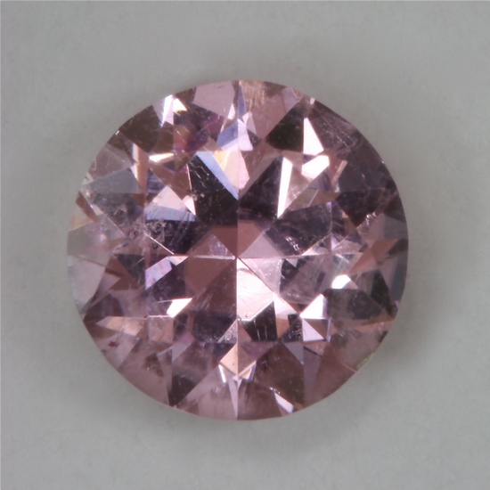A pretty baby pink pastel standard round brilliant is from Afghanistan. It is moderately included, but still flashy. It weighs 1.03 carats.