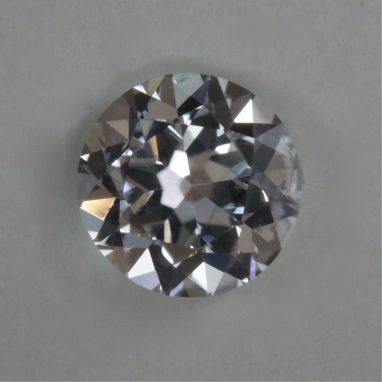 Slight included mixture of colorless, blue and pink colors. All very pale and bright. This standard round brilliant weighs .84 carats.