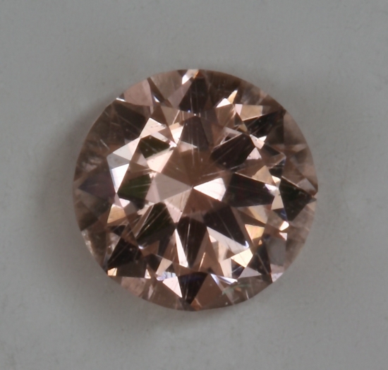 This small round has one feather down the middle of the standard round brilliant. Face up it is not very noticeable (even under the loop.) because it is perpendicular to the table. It weighs .24 carats.