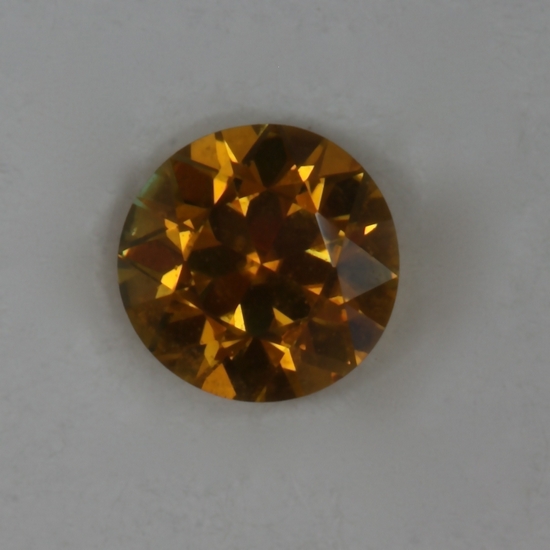 This small standard round brilliant appears to be eye clean and have fine crystal. Its golden color has a darker medium tone level. It weighs .31 carats.