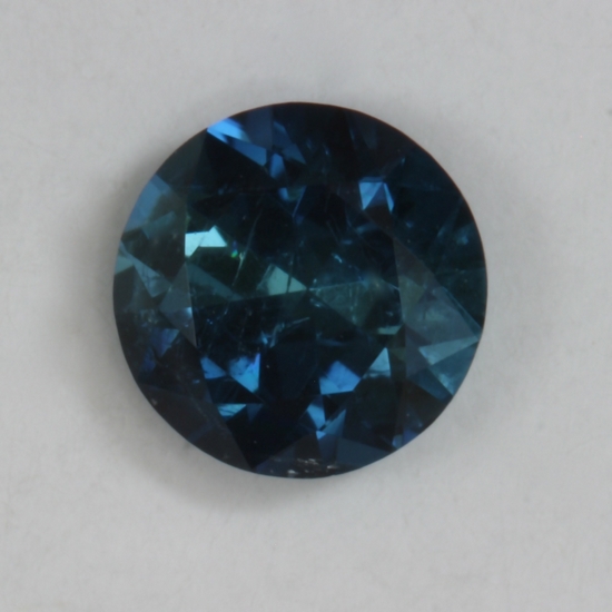 This smaller standard round brilliant has a nice rich blue color that is not too dark. It does have some inclusion toward the girdle that are well hidden by the stone richness. It weighs .45 carats.