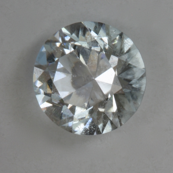 This standard round brilliant is lightly included and lightly toned. It also has such a light blue color that it is nearly colorless. The inclusions do limit the flash, but there is still plenty there. It weighs.85 carats.