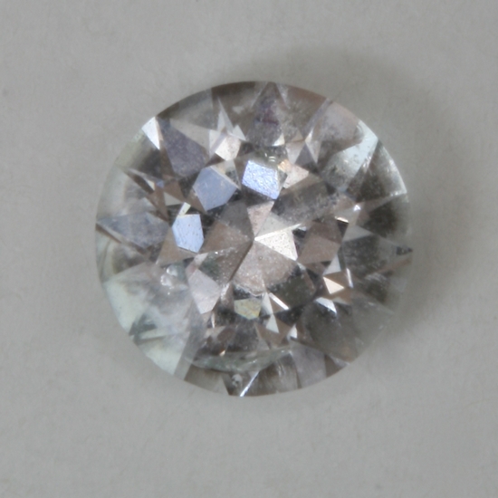 Lightly included standard round brilliant. It is a very pale blue with a light tone value. It weighs .36 carats.
