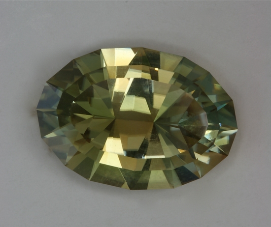 This gemstone came from Del Gado Mozambique. It is eye clean and has a fine uniform medium pastel yellow color without a green overtone. It has fine crystal and weighs 7.58 carats.