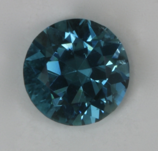 This is a smaller standard round brilliant, but it has the heart of a champion. It great medium toned blue is without green or gray. This sparkling, flashy gemstone weighs .29 carats.