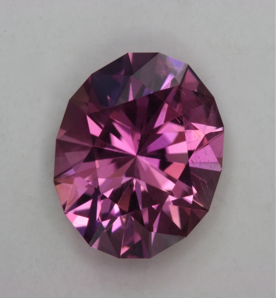This bright pink oval with a touch of violet is lightly included on one side of the table. It has a good medium tone value and weighs 2.32 carats.