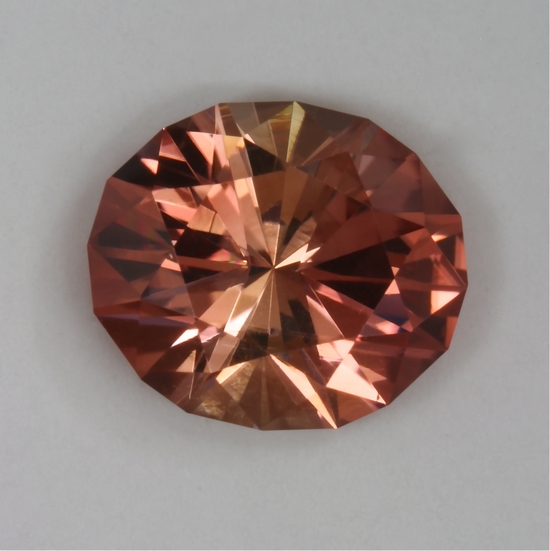 This oval is a flashy gem with the lighter peach color on the sides of the oval. It appears to be eye clean and has fine crystal. It weighs 2.12 carats.