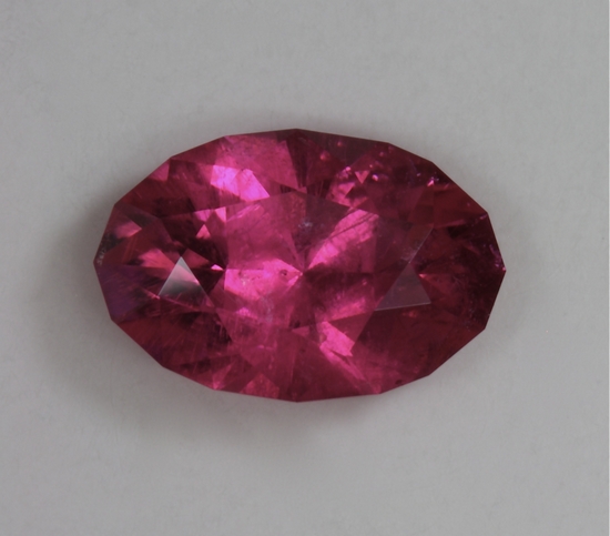 This hot pink oval is pretty heavily included. And it effects the quality of the stone flash as well as leaving marks on the tables surface. Still even when the inclusions flash, the hot, candy=like color dominates everything. It weighs 1.07 carats.
