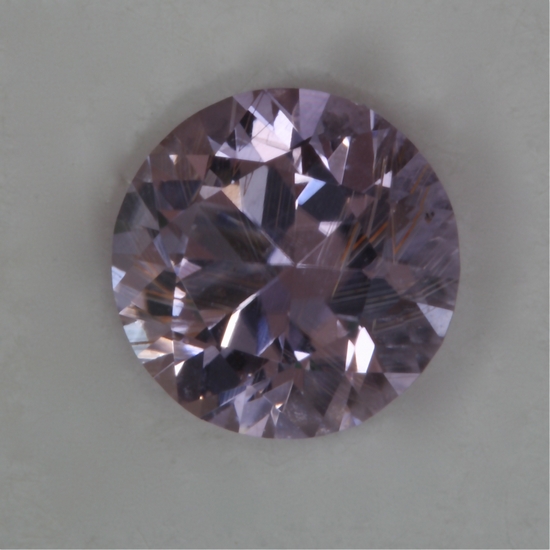 this standard round brilliant is shows its cuprian nature with a pale purple color. It has some eye visible growth tubes that have little impact on the stone. It weighs .45 carats.