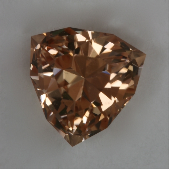 This medium lightly toned peach shield cut is slightly included. It is very bright and weighs 1.01 carats.