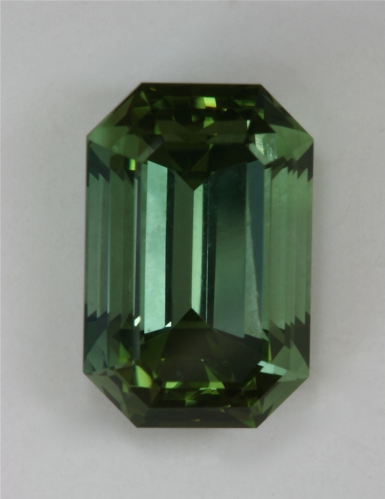 This emerald cut has the classic, clean, medium green color. The ends are slightly yellower than the sides. It is eye clean and weighs 3.86 carats.