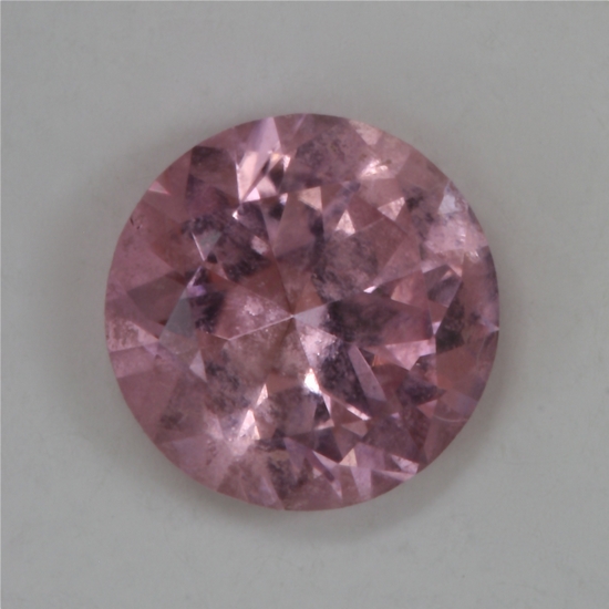 This standard round brilliant has a baby pink color. It is significantly included, which does slightly effect the flash of the stone. It weighs .43 carats.