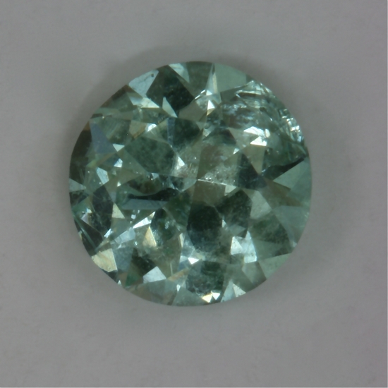 This standard round brilliant is really too small to show the sea foam look at its best. I like to cut sea foam in a way the mixes the blue green and yellower green together without completely eliminating either one completely. This round is also significantly include to the point where there are marks in the table. It weighs .52 carats.