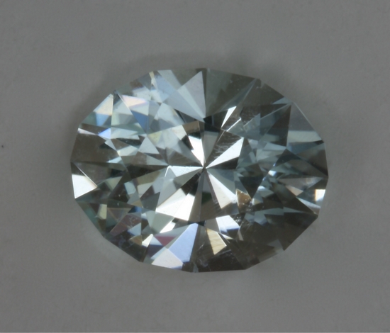 This small oval is the palest shade of baby blue to the point that it can not be seen at times. It appears to be eye clean and has a very bright flash. It weighs .77 carats.