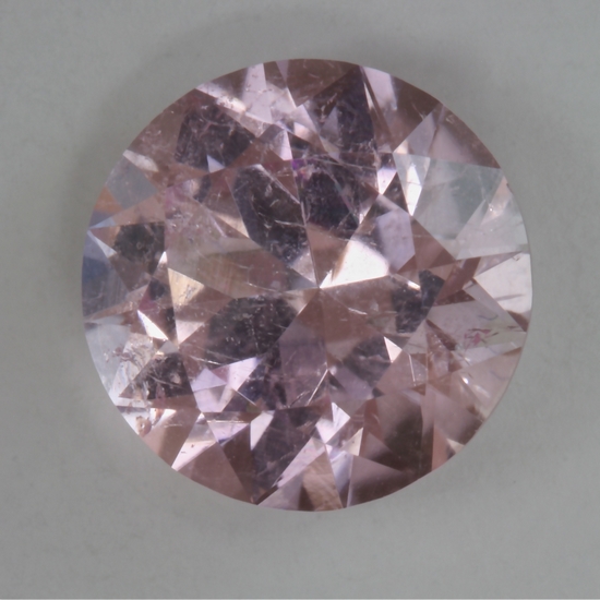 This standard round brilliant is bright and flashy. It came from Afghanistan and its baby pink color is mild and pure. While its clarity is marked by an assortment of faint inclusions. It weighs 1.54 carats.