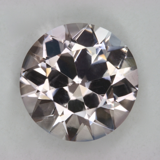 Depending on the light, close votes on pale colored tourmaline can be difficult to verify. I think that this bright and eye clean tourmaline has a bit of something color wise so I may call it creamy white. Either way the standard round brilliant is bright, flashy and without any signs of inclusions. It weighs 5.67 carats.