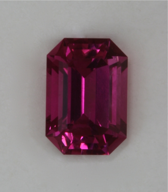 This emerald cut maybe small, but it is such a bright medium toned hot pink that it is tough to miss. it appears to be eye clean and weighs .53 carats.