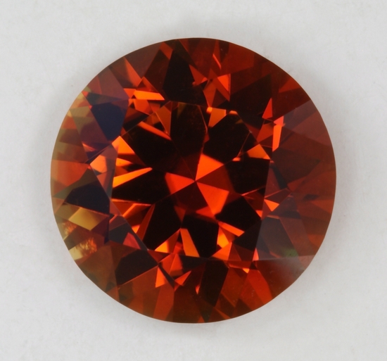 This standard round brilliant has a great flash of rich savory orange in a dark toned stone. It appears to be eye clean and with fine crystal. It weighs 2.05 carats.