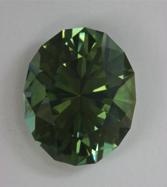 This great green oval is not noticeable dichroic face up. Without darker ends, the oval, which has great crystal, is very bright and flashy. A great all around green that weighs 3.66 eye catching carats.