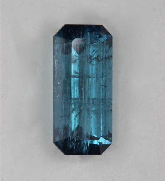 This long ratio emerald cut is heavily included with a variety of problems. It was mainly faceted for it color which is a fine blue. It doesn't even have good crystal and weighs 2.80 carats.