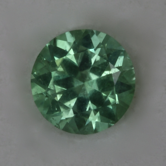 I found out that this standard round brilliant had copper with my spectrometer. It's ability to catch the eye despite its small size is a testament to the power of copper in tourmaline. This gem is medium toned, lightly included and weighs .57 carats.