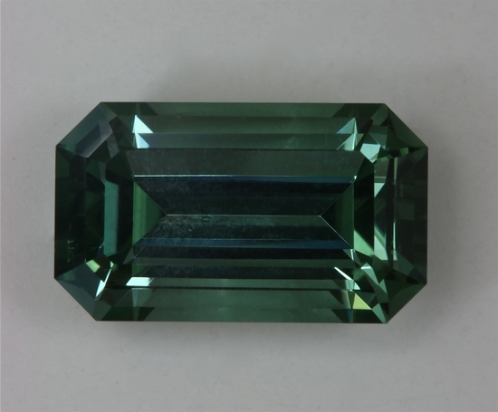 Weakly dichroic and highly transparent, blue green pastel emerald cut. #979