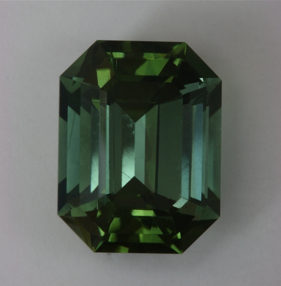 Mildly dichroic, medium toned, highly transparent emerald cut. #988