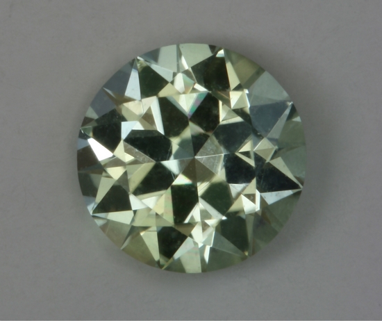 This standard round brilliant has such a light tone value that tits yellowish color can be hard to see clearly. The stone is eye clean and like all paler tourmaline, that are cut right, are very bright and flashy. It weighs .96 carats.