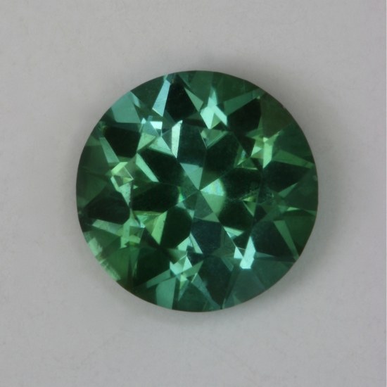 This standard round brilliant is cut so that you can see both dichroic colors. The green and blue color bounce around in a crisp, bright dance. The stone appears to be eye clean and has fine crystal. It weighs 1.67 carats.