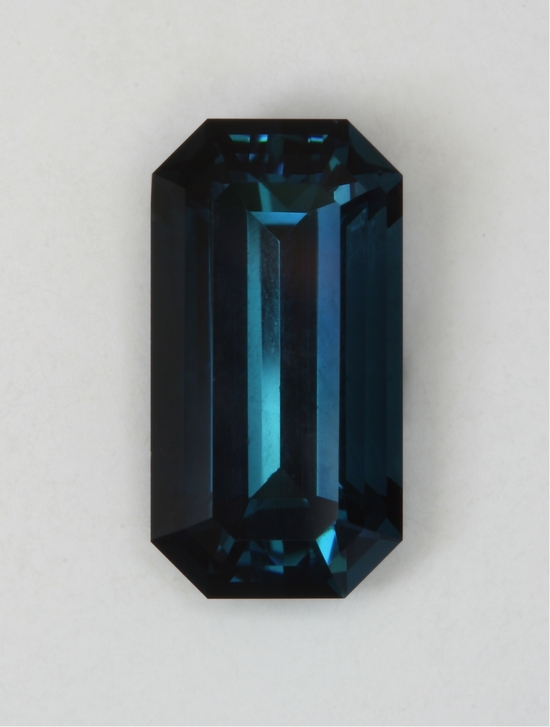 This is a GEM. A royal blue, indicolite, that few people have seen in person. It is not dichroic and its even medium dark tone supports the royal wish to be admired. I solute this longer ratio emerald cut that weighs 2.59 carats.