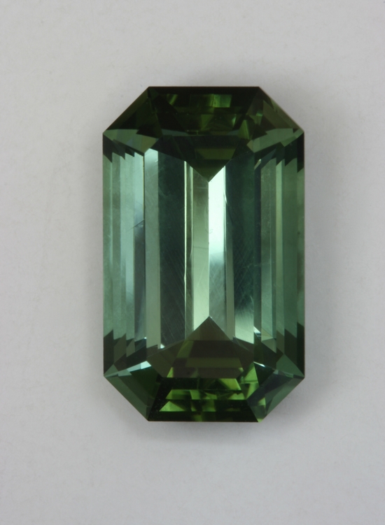 This emerald cut does not have any problems. Its fine color of a medium pastel green with maybe a touch of blue is flashy and bright. It appears to be eye clean. It weighs 4.83 carats.