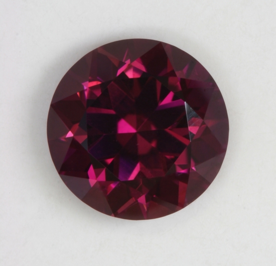 This red/pink standard round brilliant has only a modest amount of flash. It has a high tone level with dark elements. It appears to be eye clean and can come to life in brighter light. It weighs 1.49 carats.
