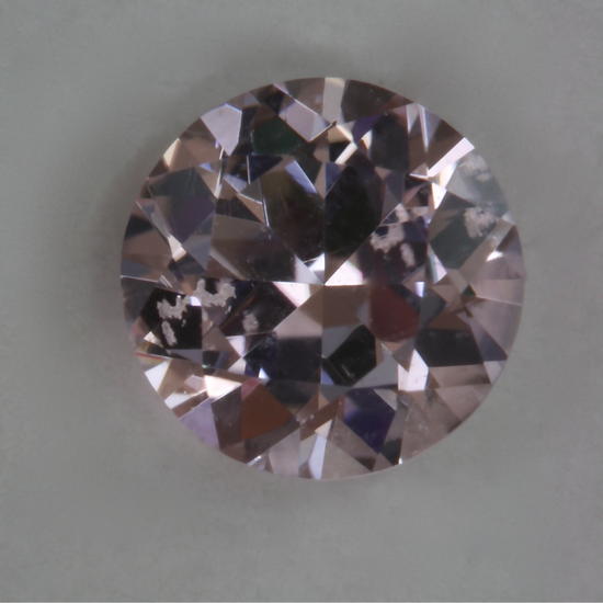 Baby pink slightly included, Afghan round. This standard round brilliant is slightly included and has a baby pink color. It is from Afghanistan.